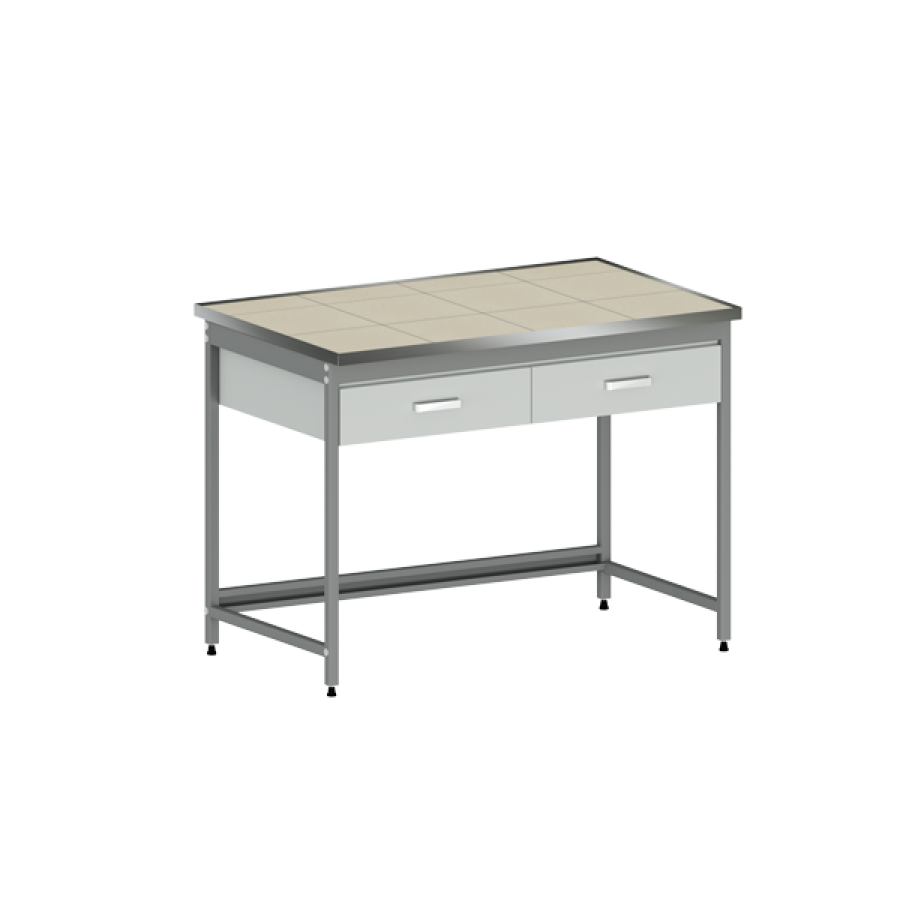 Стіл призначений для організації робочого простору та використовується для встановлення обладнання, розміщення хімічних реагентів та проведення необхідних лабораторних робіт. Конструкція металевої опори столу виконана таким чином, щоб забезпечити максимально зручні умови для щоденного прибирання. Стіл висотою 800мм використовують для роботи сидячи, висотою 900мм для роботи стоячи.